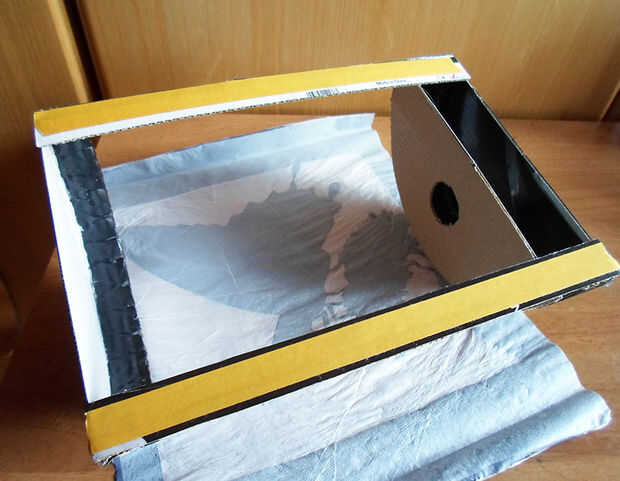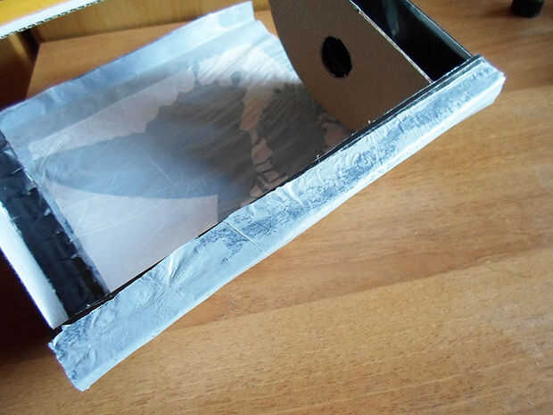 Coloque el rectángulo de plástico debajo de la estructura de cartón.