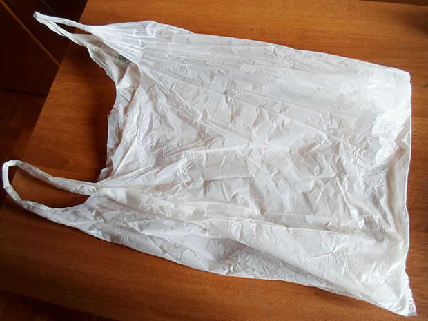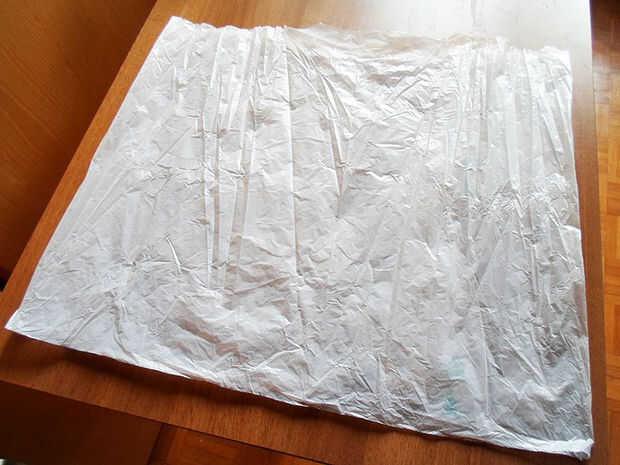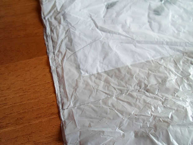 Tomar sus bolsas de plástico y cortar las asas y el final hacia fuera.