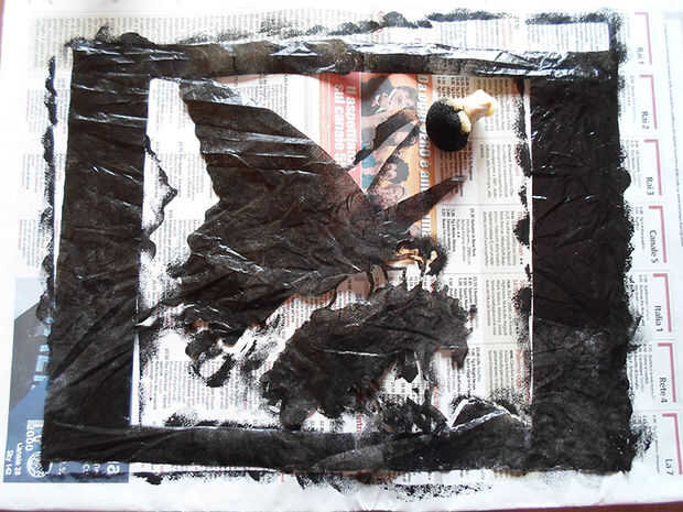 Por esta razón, decidí dab en el plástico con una almohadilla de espuma de tapicería. Puedes ver cómo lo hice en el paso 4 aquí.