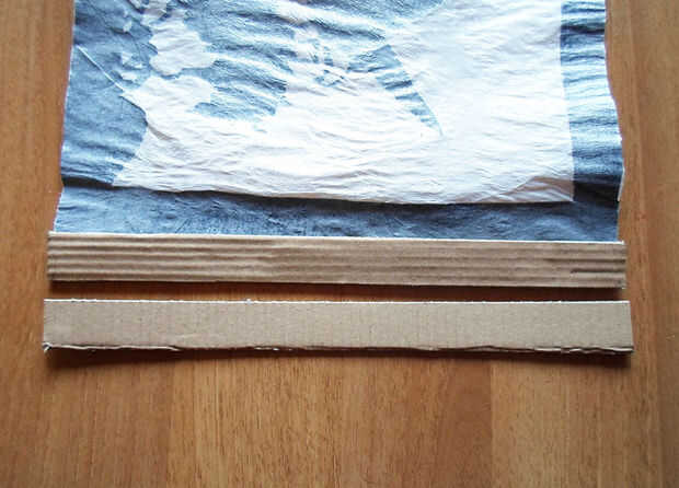 Cortar 2 tiras de cartón tan largo como la altura del rectángulo de plástico, que es de 24cm (9,44 pulgadas), y hacer que 2cm (0,78 pulgadas) de ancho.