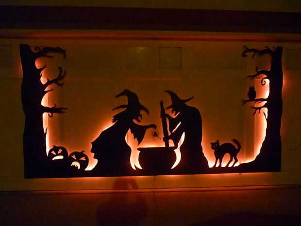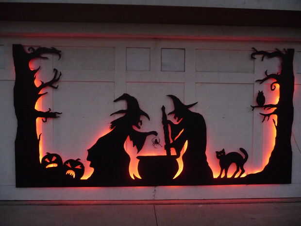 Me encanta Halloween y he estado buscando una excusa para probar la herramienta Dremel que mi esposo me dio. Pensé que una escena de Halloween espeluznante que cubre la puerta de mi garaje tendría mucho impacto. En lugar de un estándar recorte pegado en, quería añadir algún factor extra aparecidos por iluminación por detrás. Para que una silueta fue una elección perfecta.