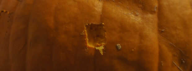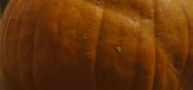 Primero, usar la herramienta con una punta afilada para empujar los agujeros en el contorno que quieres hacer. He encontrado que los agujeros hechos mucho más fáciles de tratar de tallar en la calabaza. Entonces, siguiendo los orificios tallan líneas formando el contorno que desea.