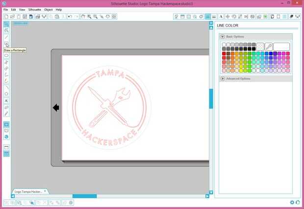 El truco de cortar dos de color es una referencia para ambos colores. Esta referencia es una caja alrededor de todos los colores. Utilice la herramienta Rectángulo y dibuje un cuadro alrededor de todo el diseño.