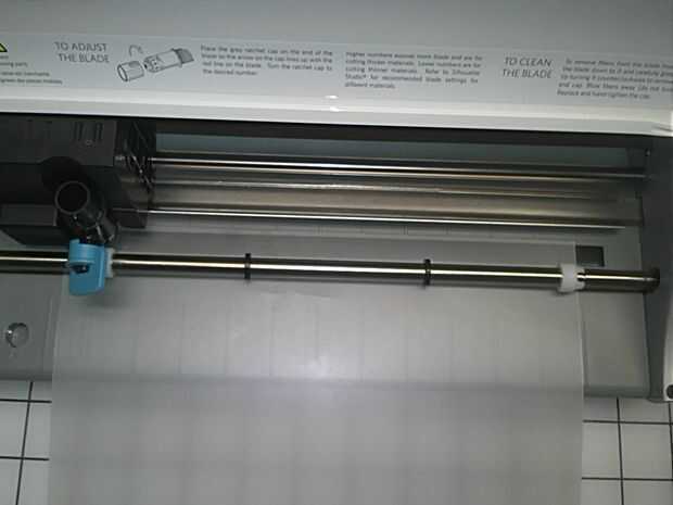 La segunda imagen muestra el vinilo cargado. El borde del vinilo es ahora el cuchillo y listo para cortar.