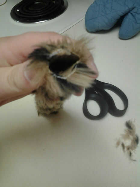 Corte los extremos de la furry o cubierta de tela apagado, creando un tubo en vez de una envoltura sellada.