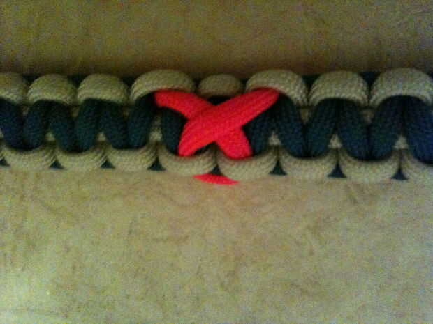 hoy voy a mostrar cómo agregar una cinta de la conciencia a su brazalete de paracord.Paso 1: fuentes de Necesita en brazalete de paracord ya hizo unas tijeras, un encendedor y 3-4 pulgadas de paracord (Nota: puede necesitar pinzas)Paso 2: Moverse el