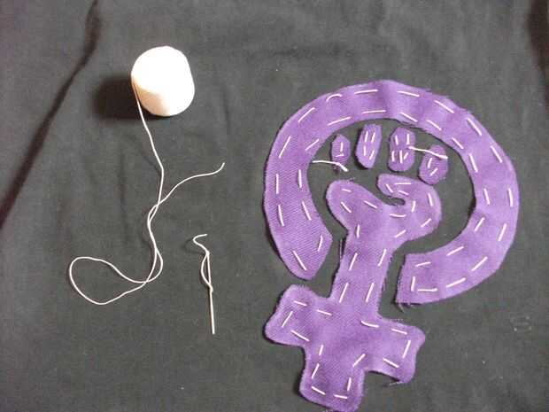 He querido añadir un toque feminista a algunos de mi ropa... así que decidió hacer un parche de símbolo feminista y había cosido a una camiseta negra. Simplemente como eso.