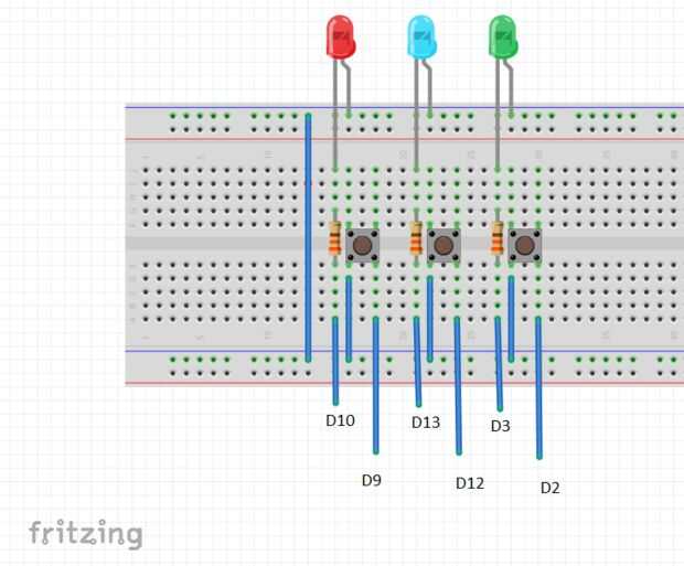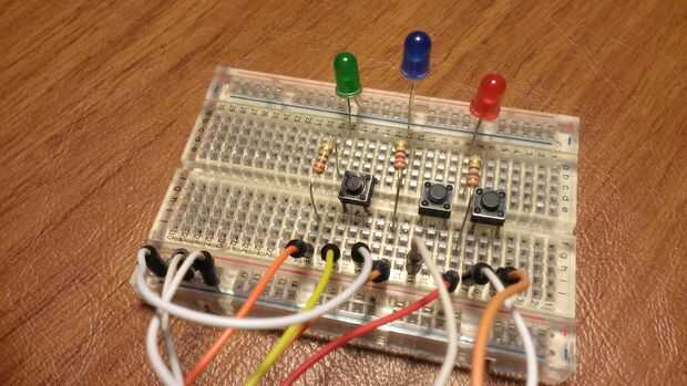 A continuación, tendremos que conectar nuestro botón y el LED del circuito. Este es un circuito bastante sencillo que combina elementos de un botón básico y un LED.