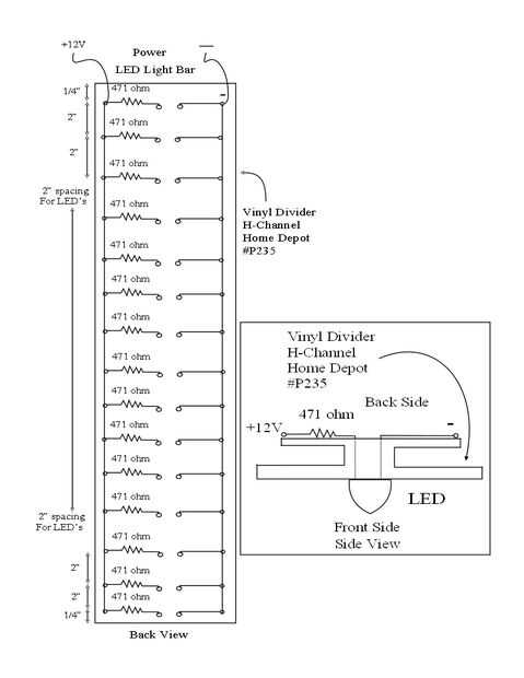 Ver el dibujo del trazado de circuito. Puse cinta sobre los alambres expuestos en la parte posterior. Esta técnica hace la tira de LED o luces de la barra de LED fácil de hacer. Puedo hacer una luz de tira del LED larga completa 36" en unos 20 minutos. Estas tiras de luz LED producen mucha luz y aspecto fantástico...
