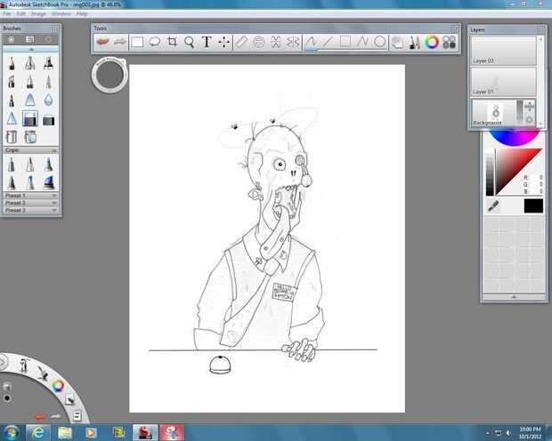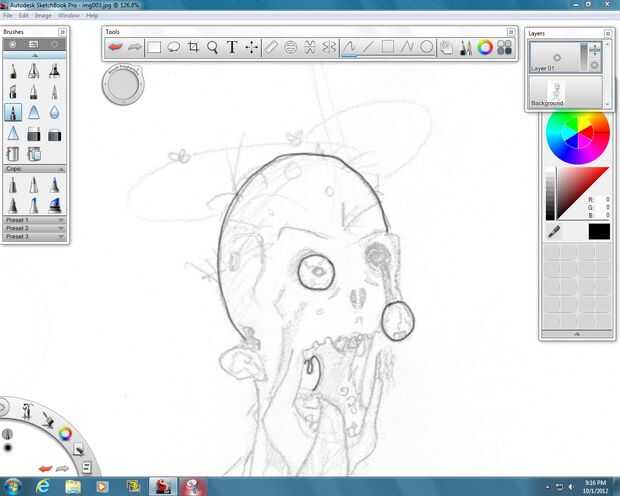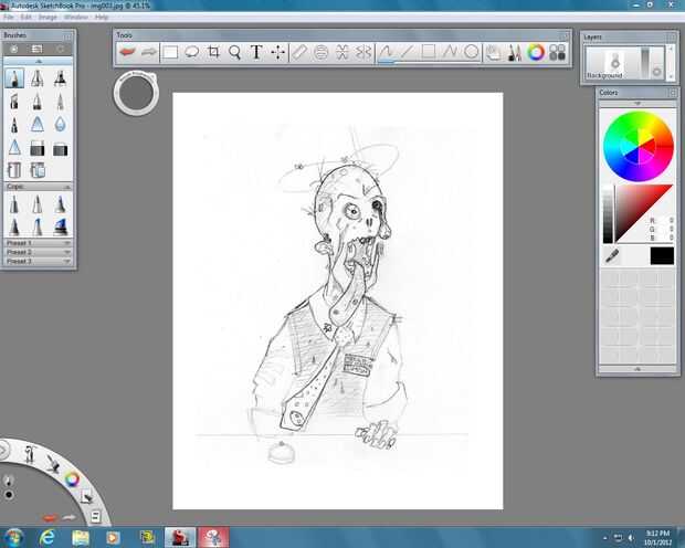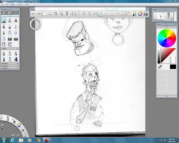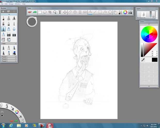 Tomo mi dibujo y abrir en Sketchbook pro. Lleve todas las barras de herramientas en sketchbook Pro que yo uso.