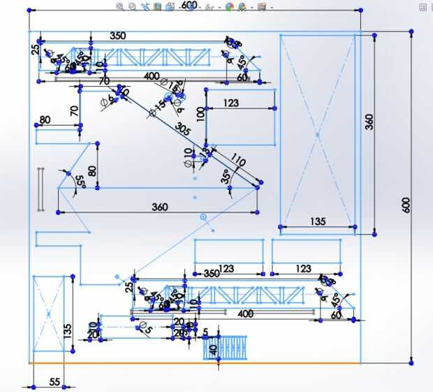 Du de opción NU me en Asamblea har prøvet en alle passer de dele, skal du lave en tegning. Skabe en ny tegning og importere alle piezas. Tegne en firkant som har Senne tamaño som MDF-pladen (600 x 600 mm) omkring delene. Denne firkant hjælper dig med skalering i softwaren til laserskæring.