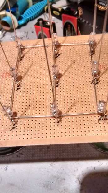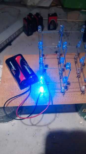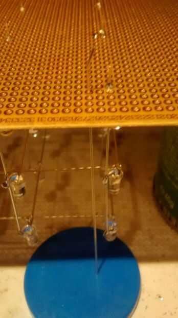 Prueba el cubo y hacer que todos que encienden los LED, si no deba volver a soldar. (Conecte la tierra a cada capa y el poder de cada carril)