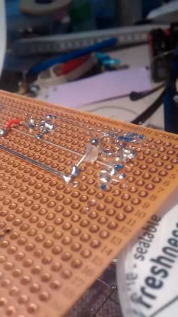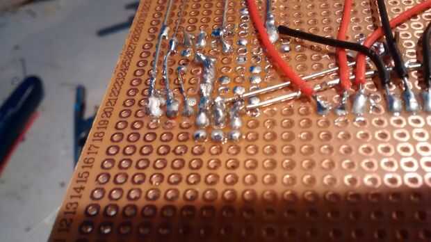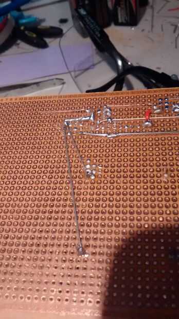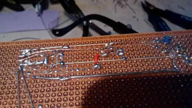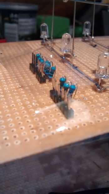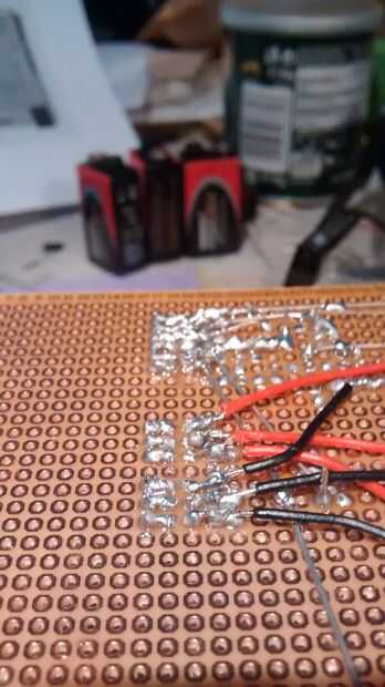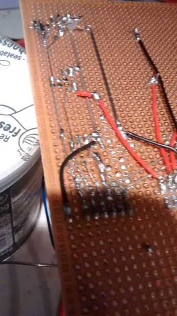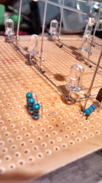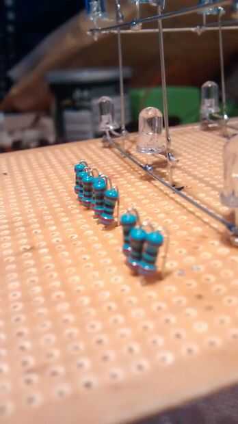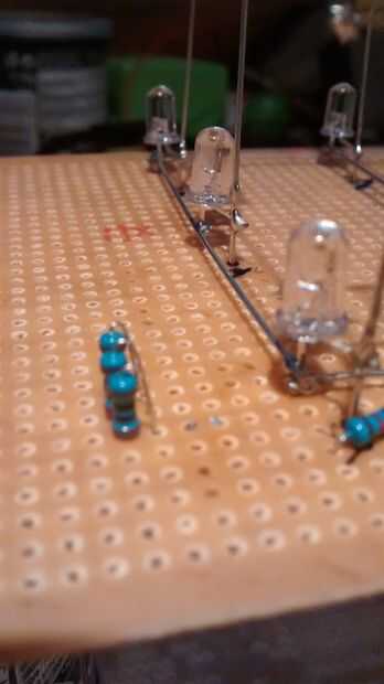 Traer todas las patas de los carriles hasta un punto y una resistencia que se les de la soldadura. He utilizado alambre para "Saltar" la tierra "de carril" lo que es mejor que también he utilizado pegamento caliente como un aislante. La imagen etiquetada cableado muestra esto y la imagen etiquetada resistencias también demuestra esto.