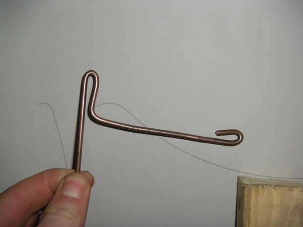 Doblar el extremo de la varilla de soldadura en un gancho ligero, esto requerirá tweeking posterior por lo que no es demasiado al fuego, así como no ha podido faltar fuego... ere en el lado de la precaución. La tira-hickey es fácil, si puede hacerlo mejor, y luego hacerlo.