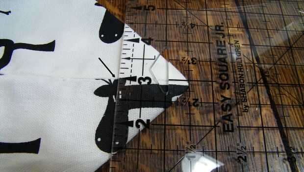 Con cuidado, dibujar una línea a través de la esquina, perpendicular a la costura. Tiendo a utilizar marcadores o lápices que se pueden lavar. No es crítico porque la marca va a terminar en la costura y no se mostrará. Pero en este punto se dibuja en la parte exterior de su bolso y usted quiere estar seguro de que su línea, incluso y en el lugar correcto antes de extraer el sharpie.