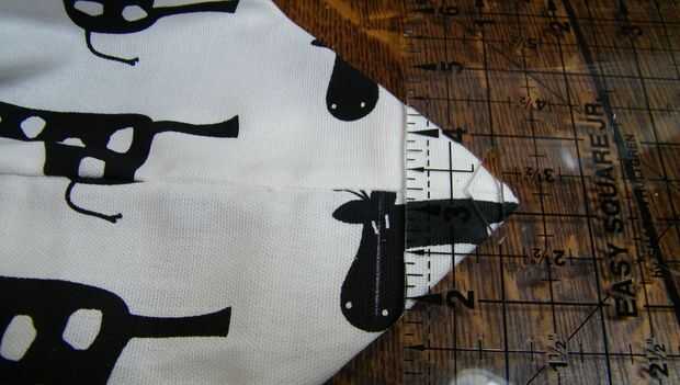 Girar la bolsa derecha. Mantener cuidadosamente las costuras anidados. Coloque la esquina de la mesa como ve en las fotos. Recuerde mantener las costuras anidadas. Se puede sentir a través de la tela para ver si están. Los márgenes se sentirán como una sección lisa sin boquetes o crestas.