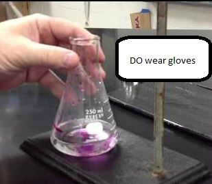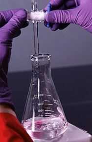 2. Gire la llave de paso vertical para permitir que el hidróxido de sodio llenar en el vaso de "solución" (debe ser un color rosado en la base va en)
