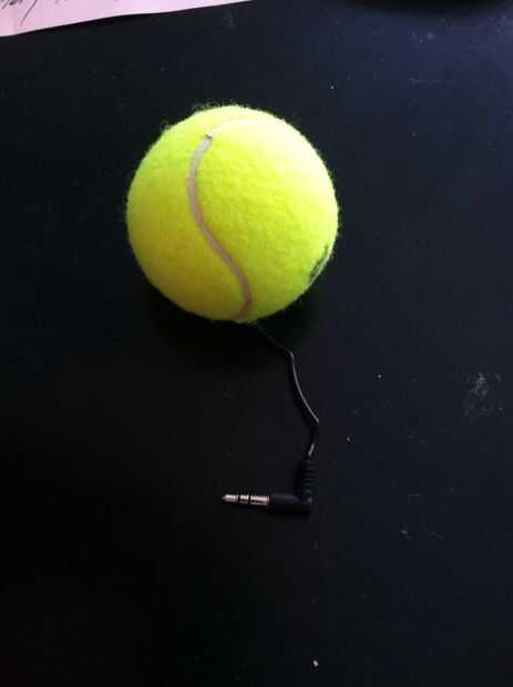 cuando vayas a casi cualquier tienda de electrónica, todos los muelles ipod son caros y suelen ser bastante simples. con la base de pelota de tenis, sólo te costará unos pocos centavos y tienes uno de un muelle tipo iPod (mis fotos fueron hechas en l