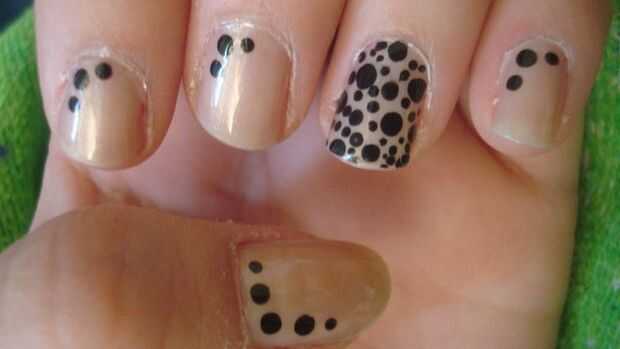 de uñas es divertido! No soy muy bueno en el arte de uñas pero pensé que sería divertido intentar algo que no sea esmalte para uñas. Por lo tanto, utilicé pintura de tela dorada con esmalte de uñas negro. Puede utilizar pintura de brillo también. Mis