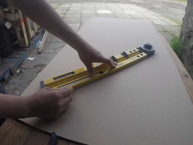 Como ya había tenido mis hojas de corte hasta 2' por 4' en la tienda, sólo necesitan marcar una línea de centro y las diagonales.