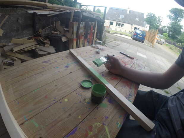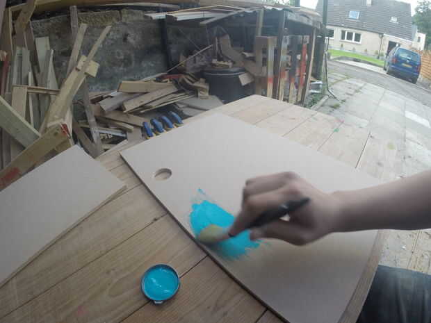 En cuanto al pintura real intento justo para cubrir toda la superficie lo mejor posible estoy seguro usando un rodillo haría que el proceso de ir más rápido. Los lados de MDF tienden a empaparse de pintura mucho por lo que éstos podrían requerir va más un par de veces. Para las partes planas principal de los anaqueles consiguió con una capa para los colores más oscuros como el rojo, pero los más ligeros como amarillo necesitan para realizar correctamente.