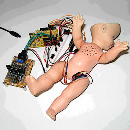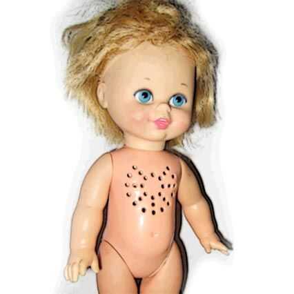 Compré los servos en el HobbyPartz por un par dólares cada uno y encontró la muñeca en un encuentro de intercambio de un dólar. La muñeca Mattel de 1967 , dice en la parte posterior y más tarde aprendí que ella es una muñeca tipo ver y decir . El cuerpo de plástico duro fue importante para una instalación exitosa.