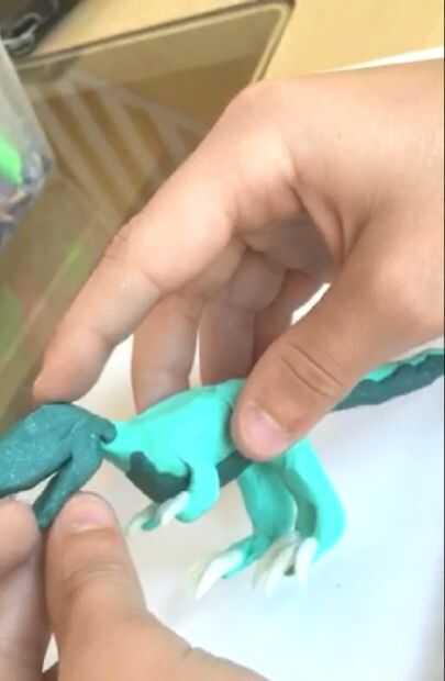 Forma el empuje brazos dos cadenas pequeñas de arcilla y luego formar las garras un acople al final.