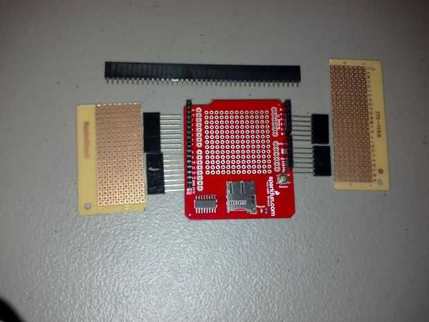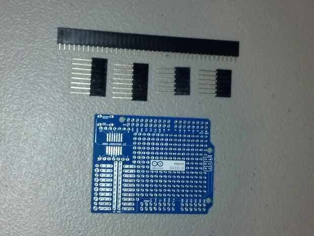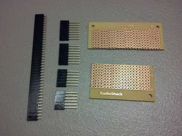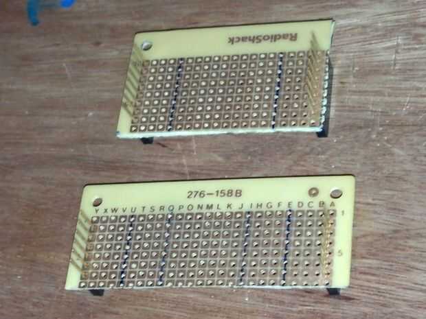 Recorta 4 piezas perf Consejo que me dio un mango poco agradable por un lado, pero nada en el lado opuesto para que cada encabezado no interfiera con el siguiente. Tuve que hacerlos 4 piezas separadas porque el espacio entre cada banco de encabezados es menor que el ancho de una clavija en un tablero estándar perf. Pensé en tomar un Arduino Protoshield estándar y cortando los bordes con una Dremel, y aunque hubiera sido más fácil, hubiera sido un desperdicio de un Protoshield buena. Así, he podido difundir los hembra encabezados adicionales a 2 pines, donde la protoshield habría tenido la nueva derecha de los encabezados junto a los antiguos.