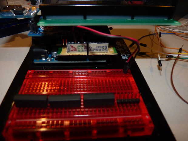 El producto final es exactamente lo que quería ser. Ahora puedo hacer las conexiones a todos los pines con un "escudo superior", como una pantalla de LCD, que no tiene encabezados femeninos.