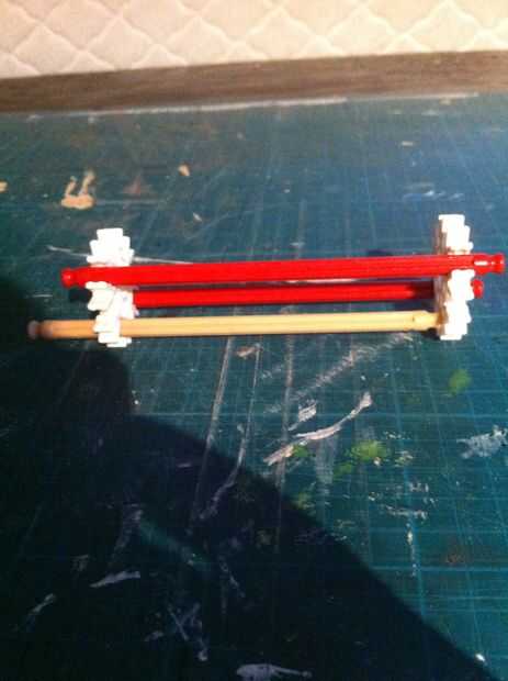 Haz primero los conectores blanco 2. Una vez hecho esto poner las barras rojas en la parte inferior, izquierda y derecha. Coloque a la izquierda y derecha a otro conector pero no a la barra inferior