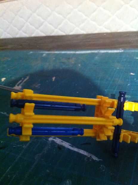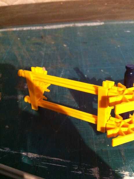 2 Añadir de las barras amarillas a los conectores amarillo. Después de esa parte añadir 2 conectores amarillos a las barras amarillo 2. Ahora agregue una barra amarilla y 2 barras azul al conector inferior amarillo.