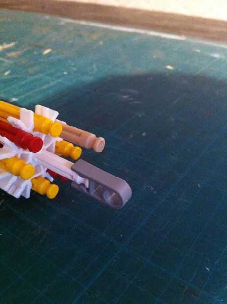 La munición para esta caña blanca una pistola y el pequeño conector gris. Disparar munición de carga encima de la pistola. Tire hacia atrás la munición se deslizará calumniar el conector gris ram será impedir que ir más lejos. Cuando esté listo para disparar a dejar ir del ram.