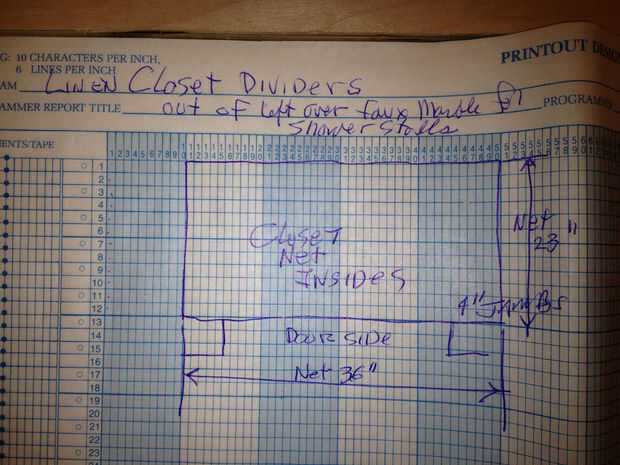 I puso los materiales (Foto 1-1), les midió cuidadosamente, en comparación con las medidas armario había hecho, (Foto 1 - 2) Y luego hizo un diagrama de corte y diseño del bosquejo para generar el máximo posible piezas que se ajustan las condiciones armario. (Foto 1-3)
