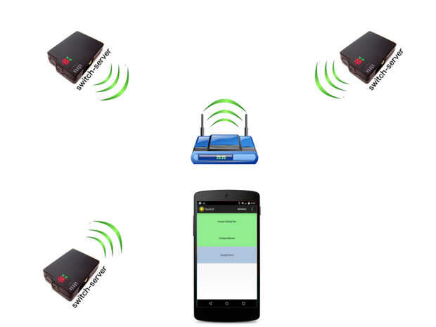 Por ejemplo, usted puede conectar uno de su RaspberryPi a una puerta de garaje y sopladores de horno y otro dispositivo para un ventilador de techo de la casa y poder controlarlos con app Android en su red doméstica con un clic de un botón.
