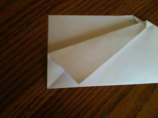 Ahora, agregar las alas doblando la esquina hacia el lado, para hacer un triángulo pequeño en el extremo.
