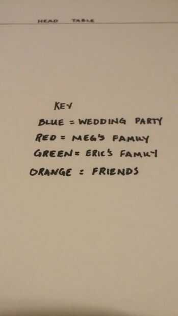 Sugiero utilizando diferentes colores para identificar diferentes grupos. Separó mis grupos en la fiesta de boda de la novia faimily, de novios familia y amigos. Si usted tiene una gran cantidad de invitados puede utilizar colores diferentes para indicar grupos de diferentes amigo. Agradable y organizada :)