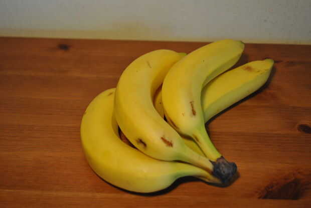 Use un cuchillo regular el plátano longitudinalemente y empuje las dos partes al borde de la taza. Usted necesita tener un espacio de buen tamaño entre los dos trozos de plátano.