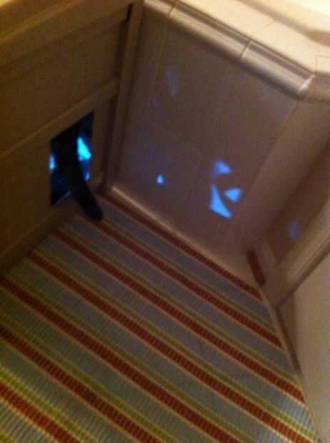 Poner cualquier otra cosa que va a almacenar allí. Encontrar sus gatos (en mi caso, todos mentían alrededor que me mira trabajar). Poner los más valientes en la caja cubierta por la parte superior y le permiten explorar. Kona miró a su alrededor un poco, frota su cabeza en la alfombra del piso nudoso y apareció justo por la puerta del gato. Mis dos señoras siguieron, y todos ellos parecían bastante contentos con la configuración de inmediato.