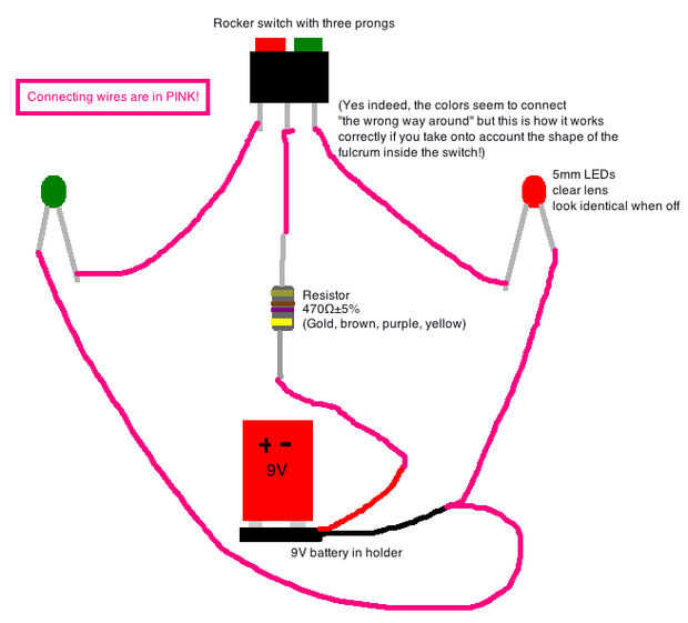 Antes de soldar nada, usé cocodrilo salto los cables al ver que este circuito funciona realmente y las bombillas LED son muy bien. En algún momento que hice algo malo y quemado un LED verde, por lo que era bueno que yo tenía repuestos e hice esta prueba, hubiera sido una desagradable sorpresa después de todo, había sido soldado!