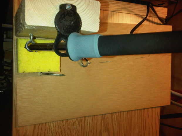 Mano atornillado el tornillo de gancho después de sostener en lugar con el hierro forrado [sí, forrado =)] para encajar bien