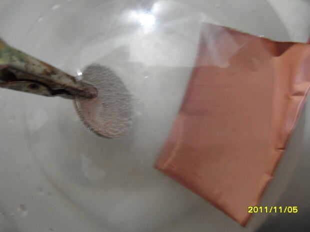 Alrededor de un minuto en ti ver una reacción comienzan a ocurrir. Las burbujas indican que, no sólo es cosa de trabajo, se forman las burbujas de hidrógeno.