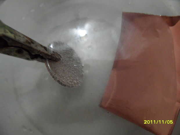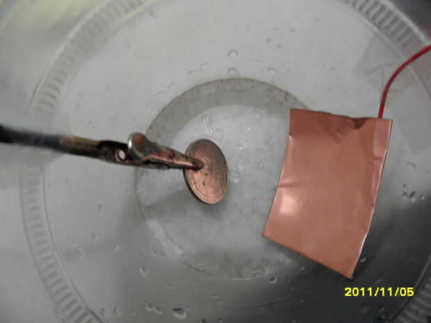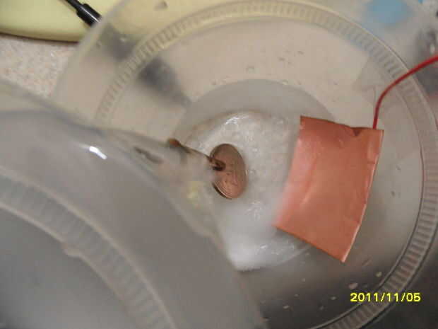 Si usas un centavo, el cuarto puede no da vuelta a negro. Esto es porque el cobre es tan potente que se hundió hasta el fondo de la solución. Para solucionar este problema, Naciones Unidas-cinta donde el centavo y cinta adhesiva en el otro lado y hacer lo mismo con el cuarto. Iniciar el temporizador en minutos de 6:00 y lo dejar reposar.