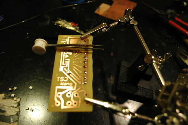 Un cojín de todos los LEDs en la placa de la soldadura.