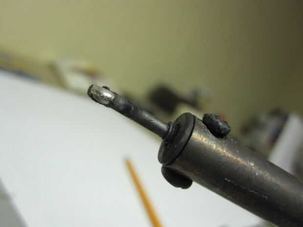 Mi soldador tiene una punta estañada. La soldadura se adhiere a la punta de la plancha, así que tengo cuando lo necesito. No perder el tiempo con el alambre de soldadura aquí!