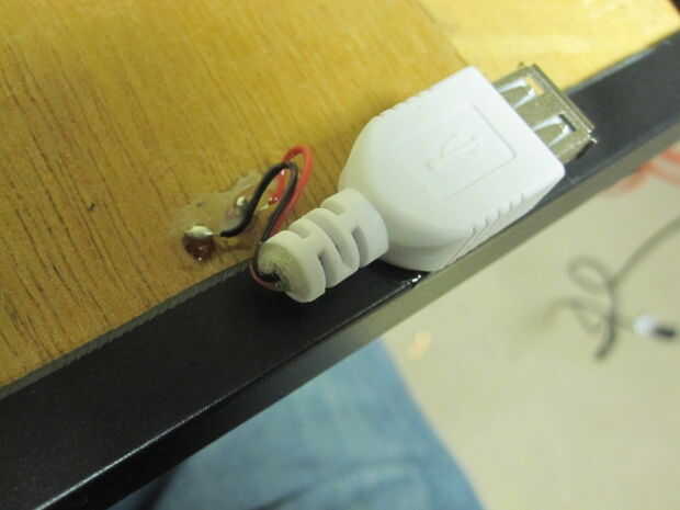 Pegue el conector USB al marco con epoxi. Debe ser un conjunto fuerte, o te haz interrumpido. Me puse epoxi las conexiones para una mayor protección.