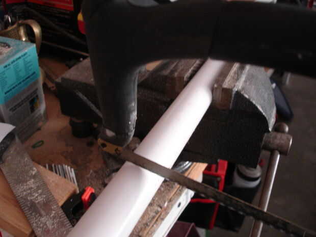 Corte el tubo de PVC con la sierra a la longitud de su ordenador portátil.