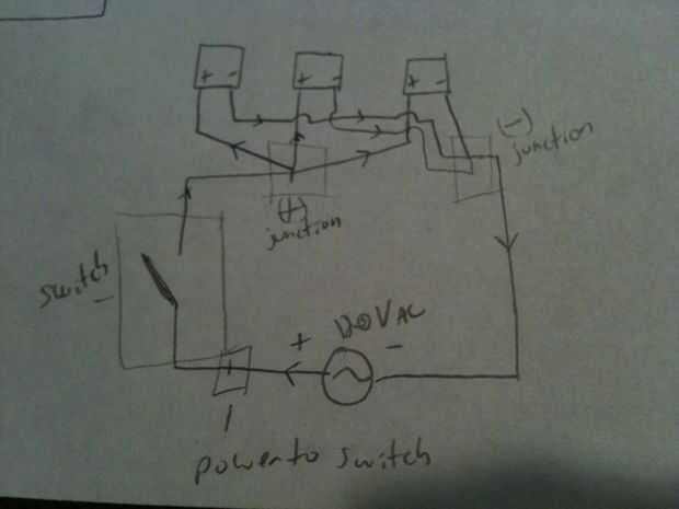 2) alambre todo el zócalo blanco conduce a y conectar la alimentación a interruptor principal a este grupo de cuatro cables juntos