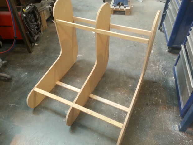 En primer lugar compré 2 x 8 pies x4ft tableros de mdf de 18mm y luego hizo una plantilla simple de la forma que quería la barra para luego simplemente recortar 3 formas idénticas (y también un 25 mm más grande en diámetro que la barra superior).