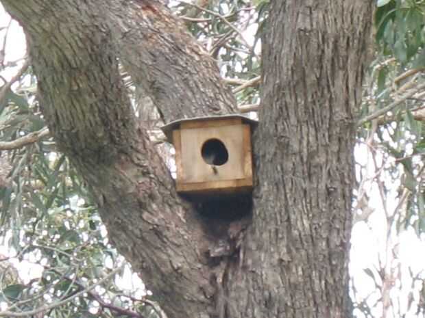 He construido bastantes cajas nidos alrededor de nuestra propiedad y ninguno de ellos ha sido tan exitosa como el tubo de PVC en cualquier lugar. Las cajas se acostumbra regularmente. Sin embargo la fauna que se mueve en nunca parece haber leído los mismos libros que tengo. Así que tenemos zarigüeyas en los cuadros de aves, arañas en las casillas de palo, abejas en la caja de madera Pardalote y Pardalotes en la ventilación del secador de paños. (bueno ahora no pero solía).