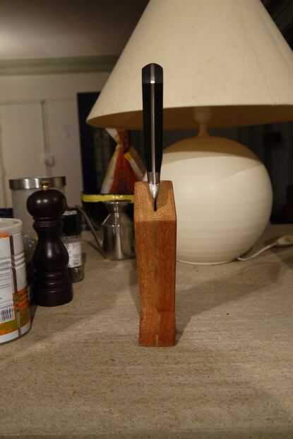 Tengo un par hace meses un cuchillo de chef como un regalo de mis abuelos y hasta ahora guardó en su caja de plástico en el cajón al no usarlo. Pero esos tiempos son más! De hecho es un objeto hermoso y quería llevar a mi mesa de cocina, con un toque de estilo. Así que comencé a pensar en hacer un bloque de madera para que y como estaba navegando Instructables, encontré unos diseños pero mina de alguna manera es diferente de lo que he encontrado así que pensé que escribiría sobre ella. Pongámonos a trabajar!